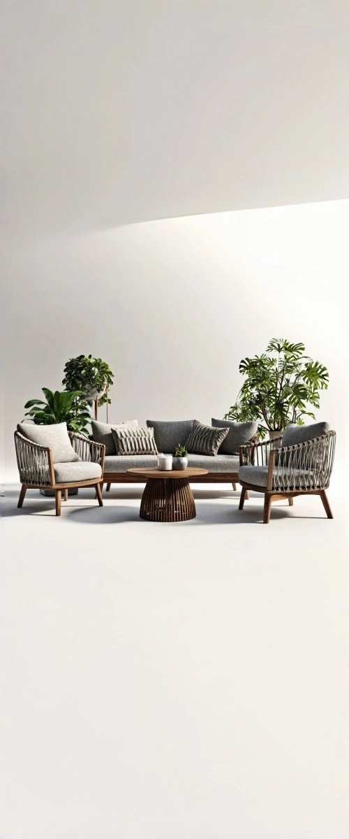 Canapé de jardin bois et corde tressée - fauteuils - table basse 185x80x78 cm - gris - style naturel contemporain